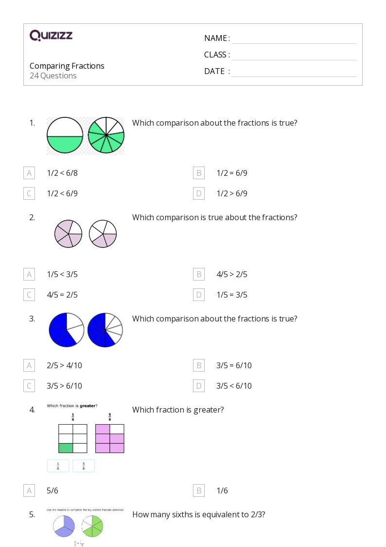 50+ Comparing Fractions Worksheets For 3rd Class On Quizizz